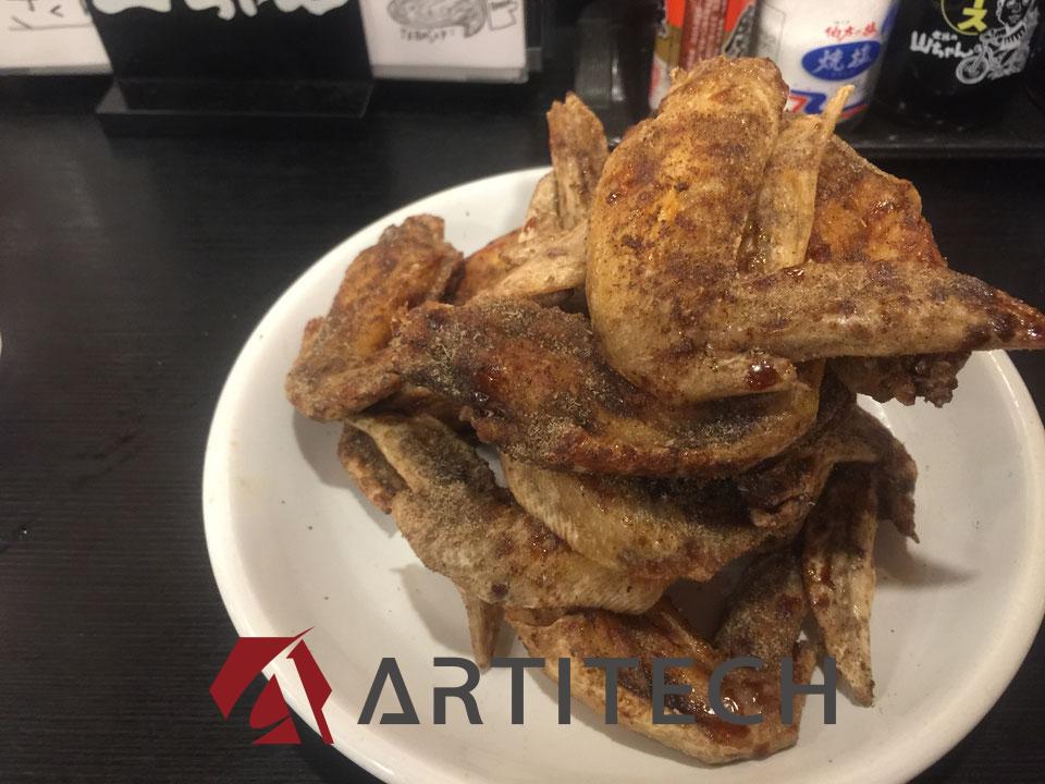 ゛名古屋の手羽先は衣をつけずに下味をつけて素揚げし、最後にタレ・こしょう・ゴマなどを振りかけて完成。シンプルな作り方ですが、手羽先を2度揚げするので、肉はふっくらしていて、皮はパリッとしています。”