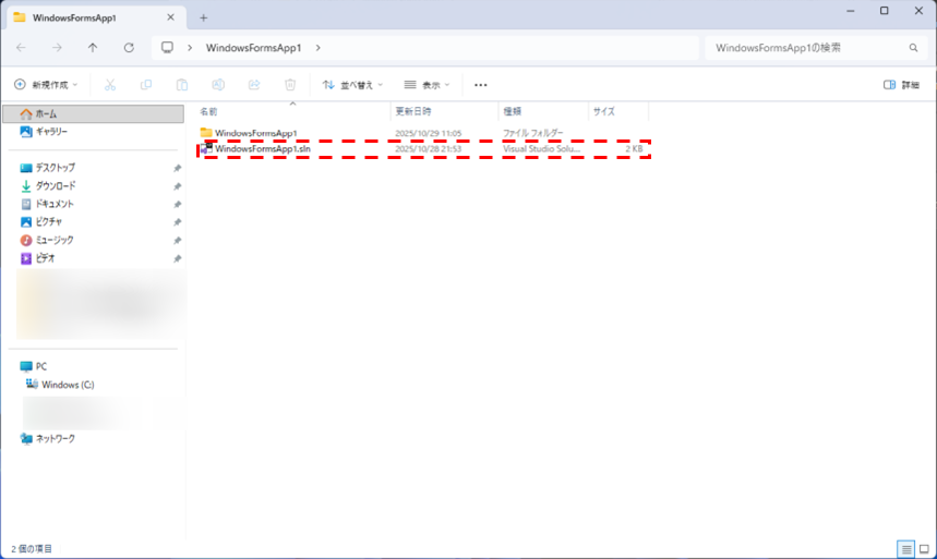 エクスプローラーでソリューションファイル(.sln)をダブルクリックしても同様の操作が可能です。
