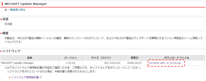 1.三菱電機のサイトからMELSOFT Update Managerをダウンロードします。
