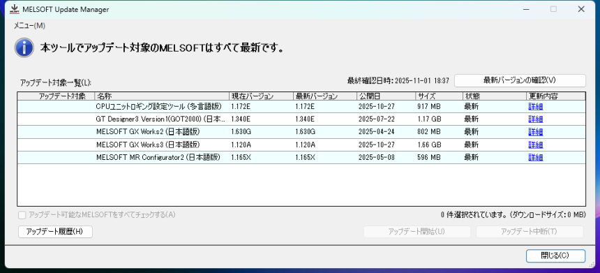 MELSOFT Update Managerは、無料で使用することができて、とても便利なのでインストールする事をオススメします。