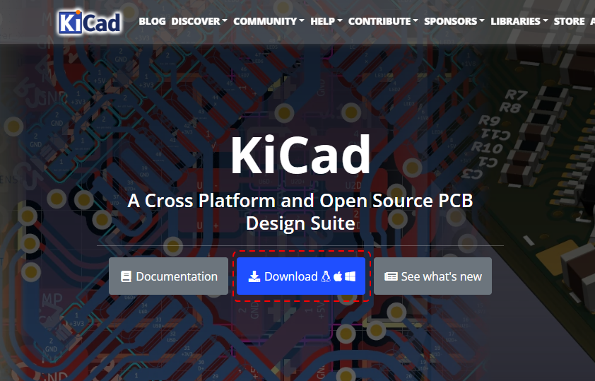 1.KiCadのトップページの「Download」をクリックします。