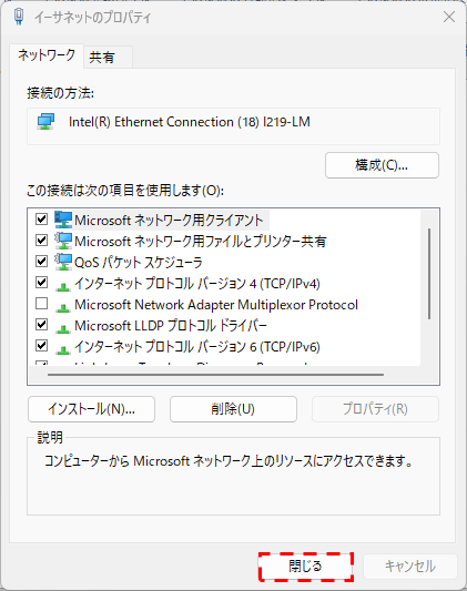 8. 「インターネット プロトコル バージョン4 (TCP/IPv4)」を選択し、プロパティをっクリックします。