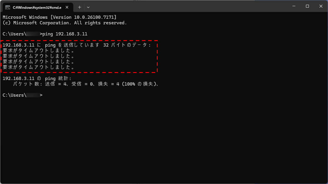 192.168.3.11 に ping を送信しています 32 バイトのデータ: