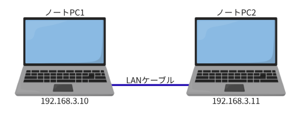 以下の手順で、ノートPC1とノートPC2にIPアドレスを設定します。
