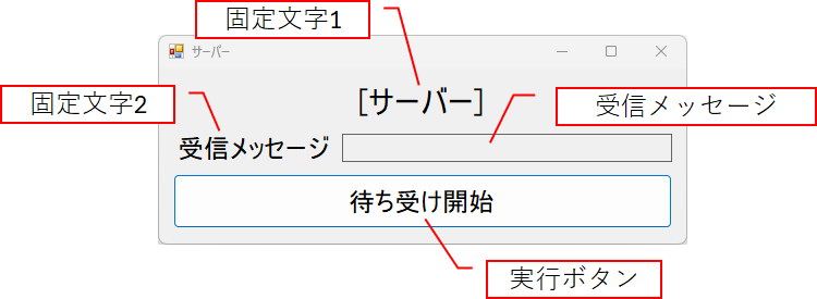 3. サーバー側アプリケーションの実行ボタン(待ち受け開始)をクリックし、待ち受け状態にします。