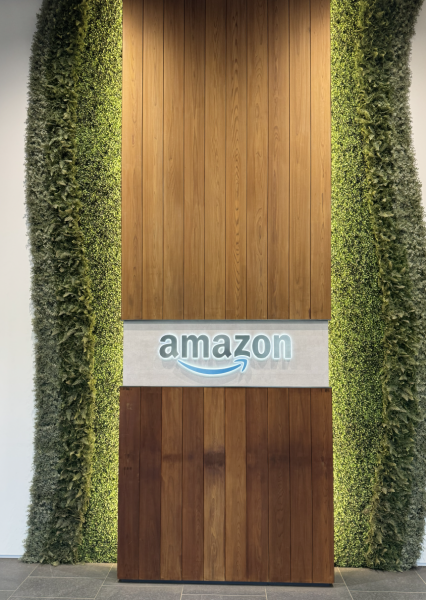 エントランスロビー内で、Amazonのスタッフが出迎えに来てくれるまで待機です。