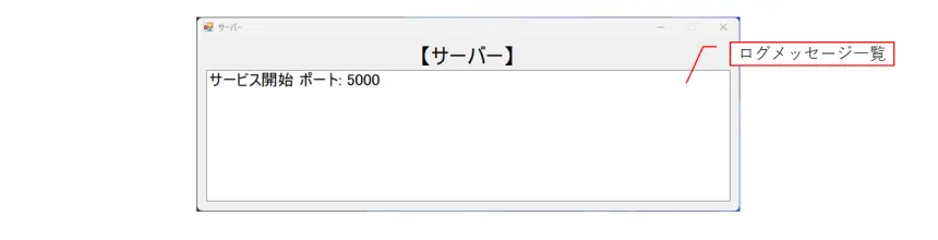 1. アプリケーションを起動すると、「ログメッセージ」にサービス開始のメッセージを表示します。