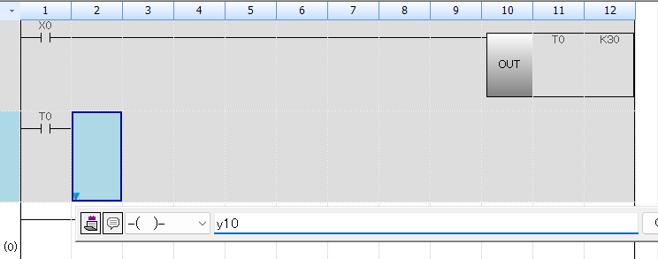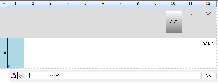 5.「Enter」キーで確定すると、「T0」のa接点が入力されます。