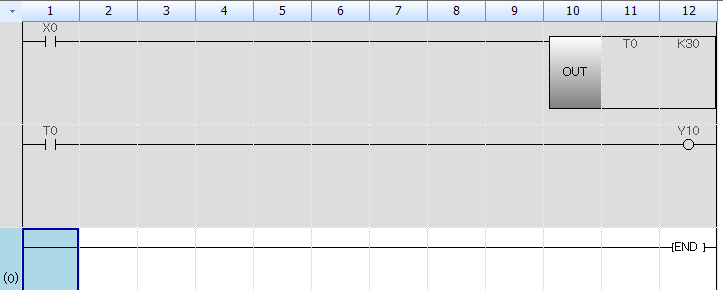 「X0」をONすると「Y0」がONする単純な回路と、自己保持回路のラダープログラムを作成してみます。