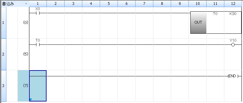 入力の仕方がわからない場合は、ラダープログラム1の作成方法の1~5をご参照ください。
