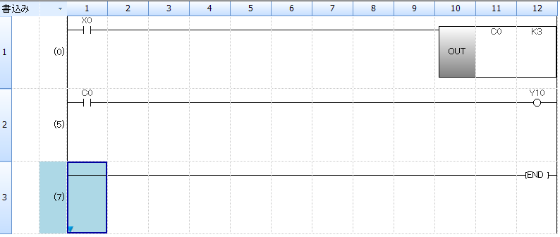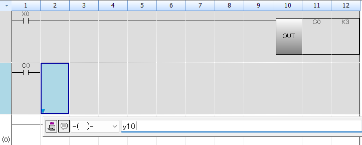 5.「Enter」キーで確定すると、「C0」のa接点が入力されます。