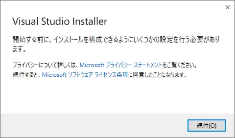 3.ライセンス条項に同意を求められるので「続行」ボタンをクリックします。