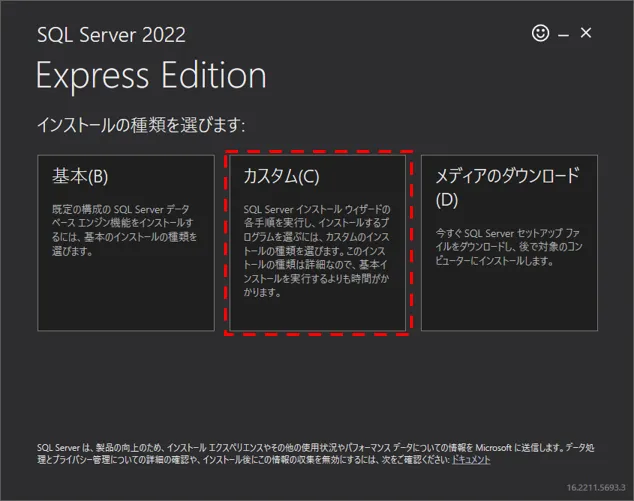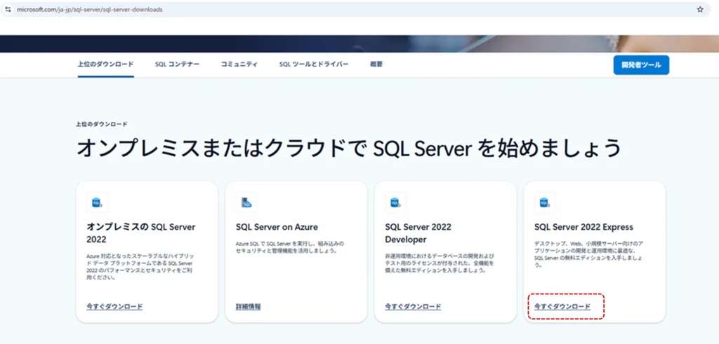 1.Microsoft公式サイトからSQL Server 2022 Expressをダウンロードします。