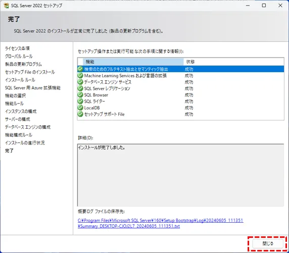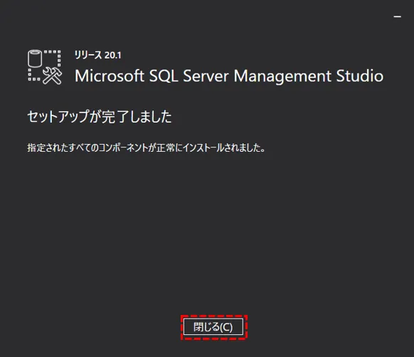 以上でMicrosoft SQL Server Management Studioのインストールは完了です。