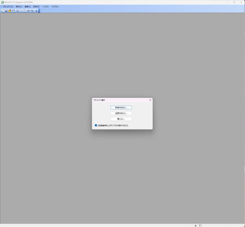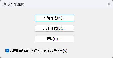 1.初期状態の場合、「プロジェクト選択」ダイアログが表示されます。「新規作成」ボタンをクリックします。