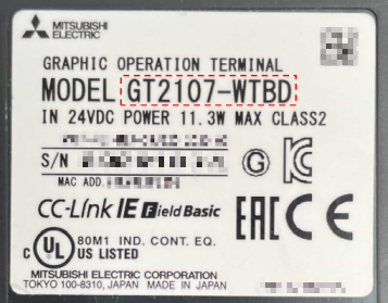 機種はGOTの形名を確認して選びます。形名はGOTの裏側に次の写真のように貼られています。