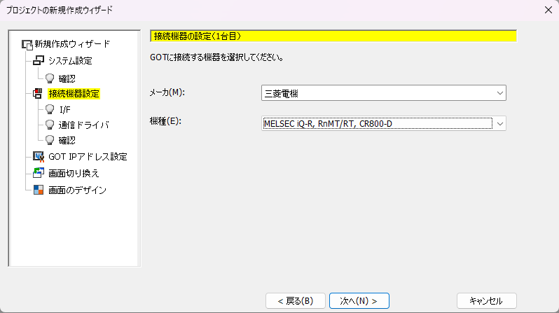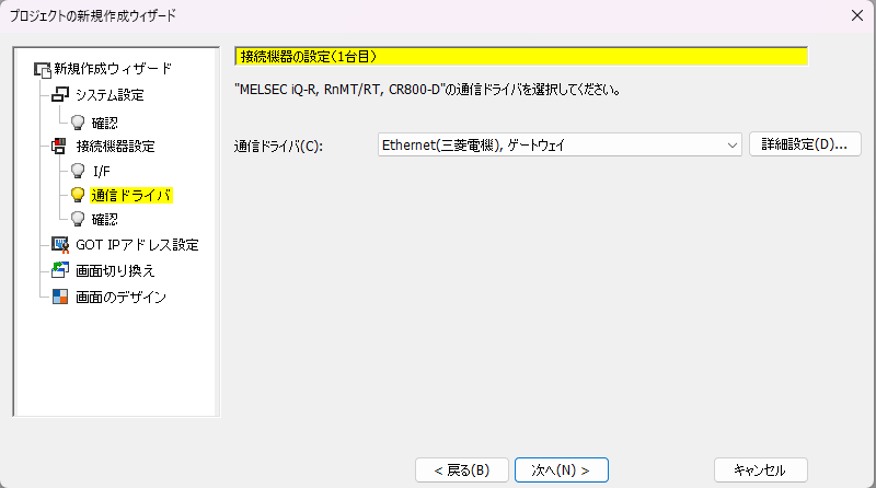 7.「接続機器の設定(1台目)の通信ドライバ」が表示されます。