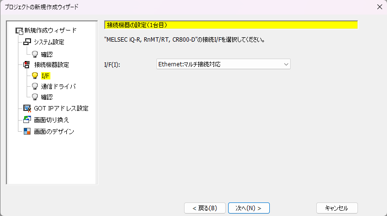 6.「接続機器の設定(1台目)のI/F」が表示されます。