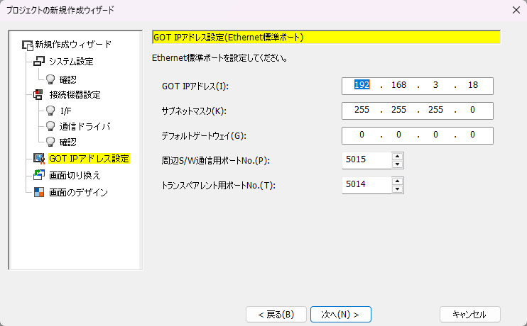 9.「GOT IPアドレス設定(Ethernet標準ポート)」が表示されます。