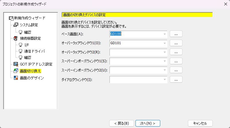 10.「画面の切り替えデバイスの設定」が表示されます。