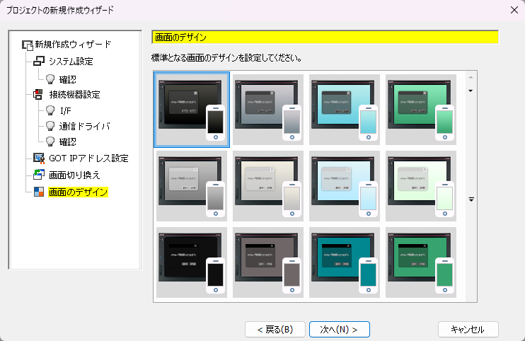 11.「画面のデザイン」が表示されます。画面のデザインを設定します。