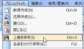 1.メニューバーの「プロジェクト」から「上書き保存」をクリックします。