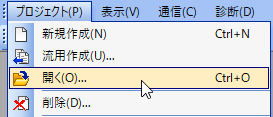 1.メニューバーの「プロジェクト」から「開く」をクリックします。