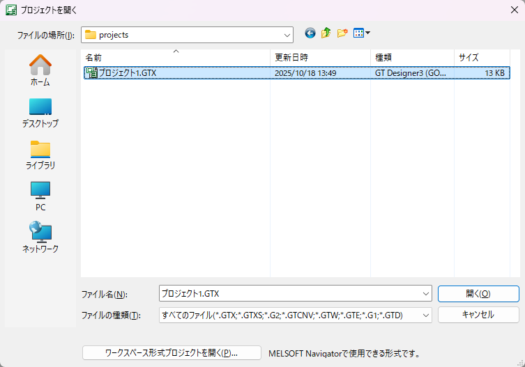 プロジェクトを開く