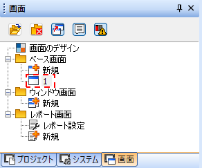 2.「画面ツリー」が表示されます。「ベース画面」の「1」をダブルクリックします。