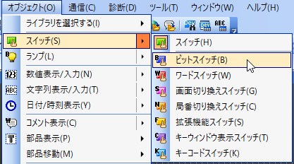 4.メニューバーの「オブジェクト」-「スイッチ」-「ビットスイッチ」をクリックします。