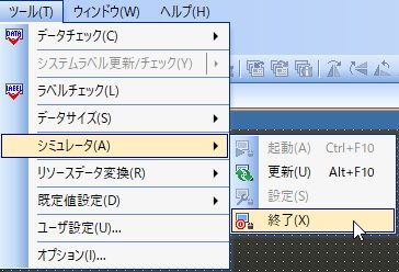 1.メインメニューの「ツール」-「シミュレータ」から「終了」をクリックします。