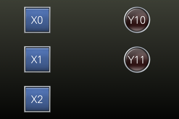 「X1」ボタンを押すと「Y11」ランプが点灯します。「X1」ボタンを離しても、「Y11」ランプは点灯したままになります。