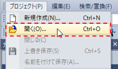 1.メニューバーの「プロジェクト」から「開く」をクリックします。