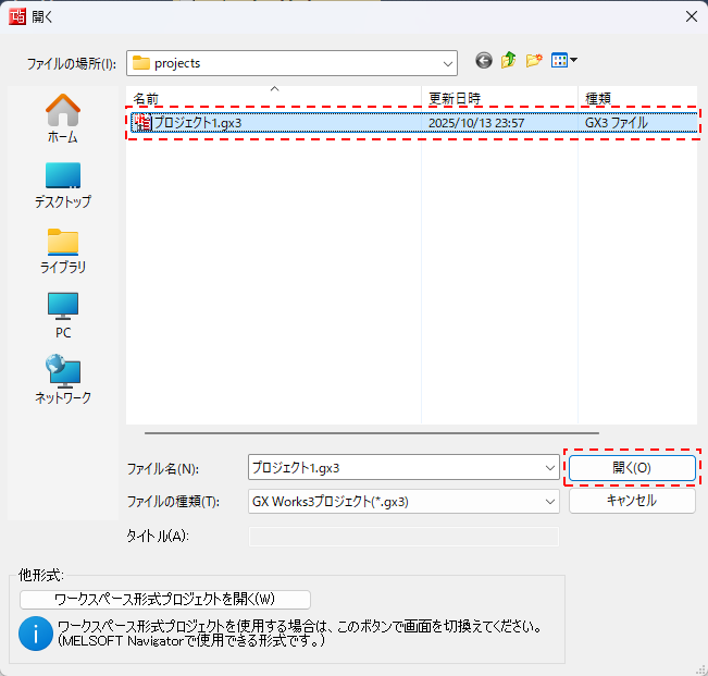 プロジェクトを開く