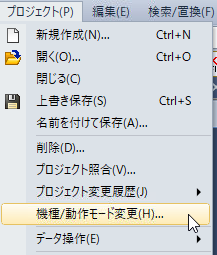2.メインメニューの「プロジェクト」から「機種/動作モード変更」をクリックします。