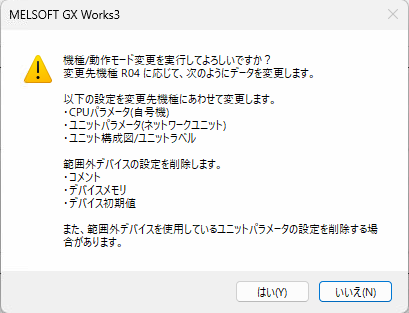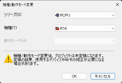 3.「機種/動作モード変更」ダイアログが表示されます。