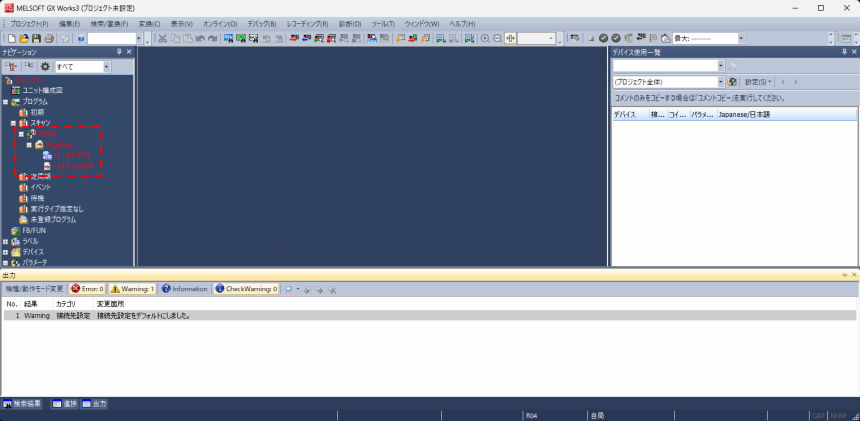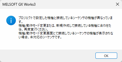 1.プロジェクトの機種と実機PLCの機種が合っているかを確認します。