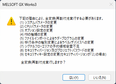 8.警告ダイアログが表示されます。内容を確認して、「はい」ボタンをクリックします。
