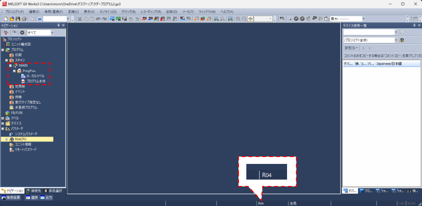 CPUユニットの型番が「R04CPU」の場合、機種は「R04」になります。